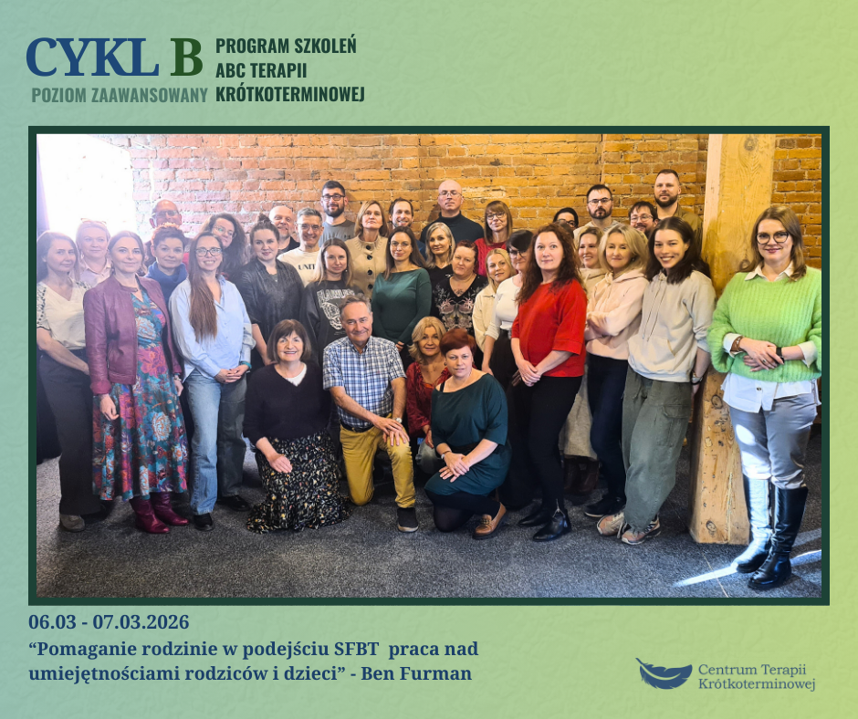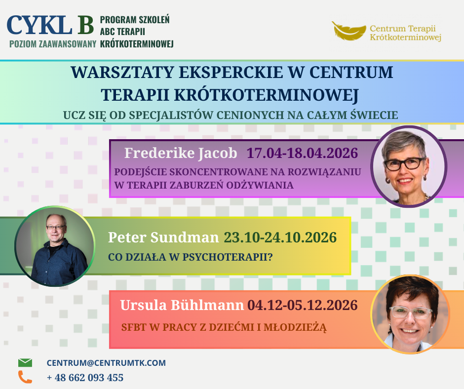 Serdecznie zapraszamy na najbliższy warsztat w ramach cyklu szkoleniowego ABC Terapii Krótkoterminowej SFBT – poziom zaawansowany B!